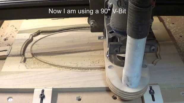 Ahora instalar un 90 * V-Bit, talla el interior acabado forma y luego tallar los números.