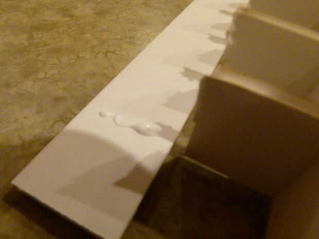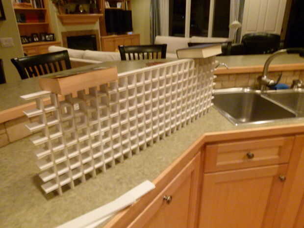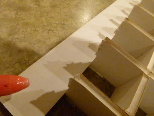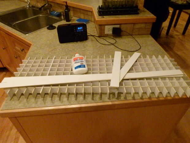 Usar algo para sostener la parte hasta la rejilla mientras el adhesivo se seque, he usado un montón de libros. También usé unos pequeños clavos para unir las partes porque mis partes estaban un poco combadas y desigual.
