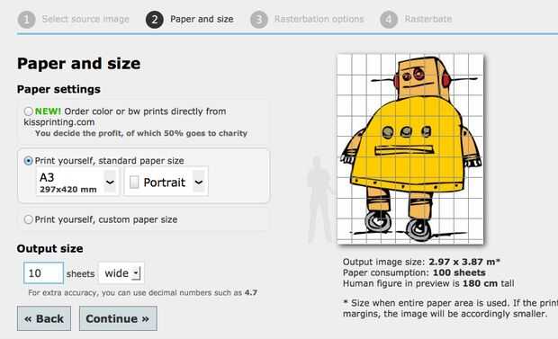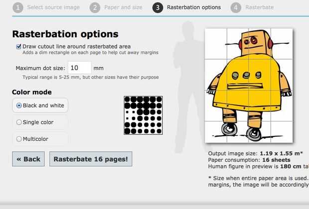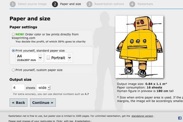 El software es muy fácil de usar, siga con las capturas de pantalla si no está seguro. La persona de sombra en el lado da una cierta idea de escala, y se limitan a 1000 hoja de papel a menos que descargues la versión independiente.