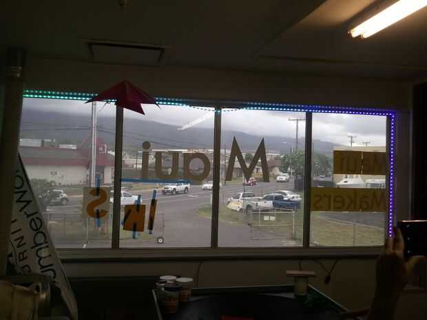 Los fabricantes de Maui es un Makerspace en Maui que todavía está en sus primeras etapas. Somos movió en nuestro propio espacio en febrero de este año y sigue creciendo nuestra membresía. Necesitábamos un gran cartel para que todos sepan donde estábamos, pero no tienen un gran presupuesto.