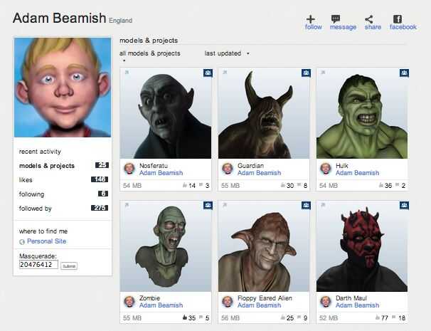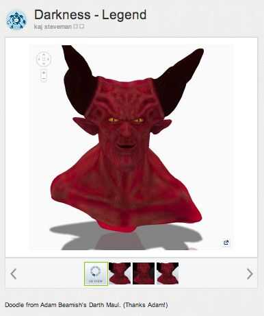 Hay muchos grandes modelos de criatura 123D - y la mayoría de los usuarios está felices de que usted utilice su trabajo. (Sólo atributo del creador original, se considera educado.)  Navegue por la galería y encuentra uno que es relativamente simple - no un montón de voladizos o espacio negativo.  Además, el espesor del material y la escala están directamente relacionados con la resolución.  En otras palabras, cuanto mayor sea el modelo y el más fino el material, mejor será la resolución de la pieza final. Por lo tanto, no escoja un modelo que se basaría en el detalle que viene a través.
