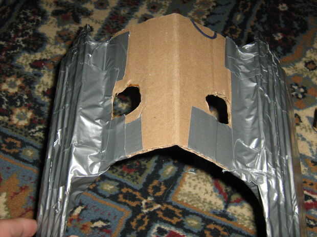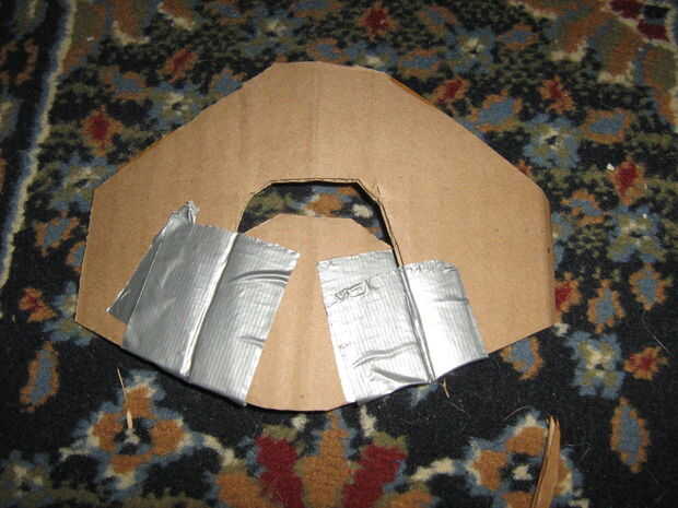 Para hacer la boquilla corte la pieza que se muestra por encima del cual es cerca de seis pulgadas a través, luego cortar el área debajo de la boca y cinta volver a hacer surcos.