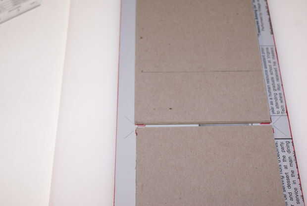1. Coloque las dos piezas de cartón hacia fuera en el aluminio de extremo a extremo. Asegúrese de que el aluminio es brillante lado de abajo (o quieres ser la portada) deje un espacio en el centro de la cartulina igual a dos veces el espesor de una pieza de cartón. Esto se convertirá en el borde inferior redondeado en la tapa de acabado.