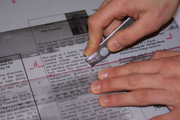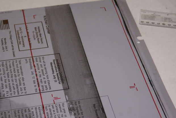 4. usando la regla y una cuchilla afilada, cuidadosamente y ligeramente corte a lo largo de las líneas exteriores. Empujar duro profundamente rayar el aluminio.