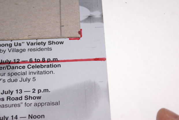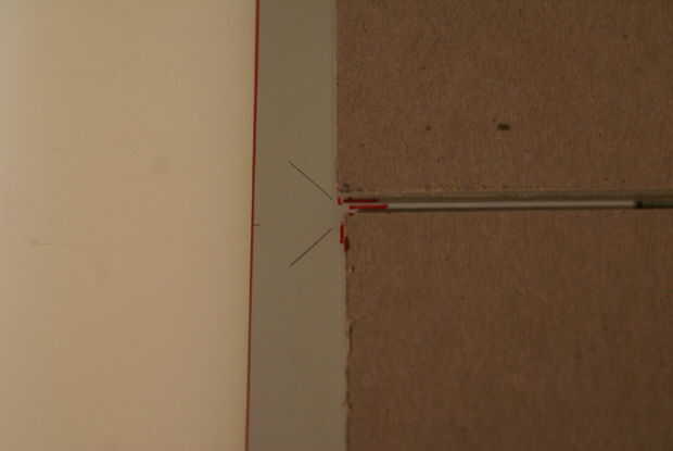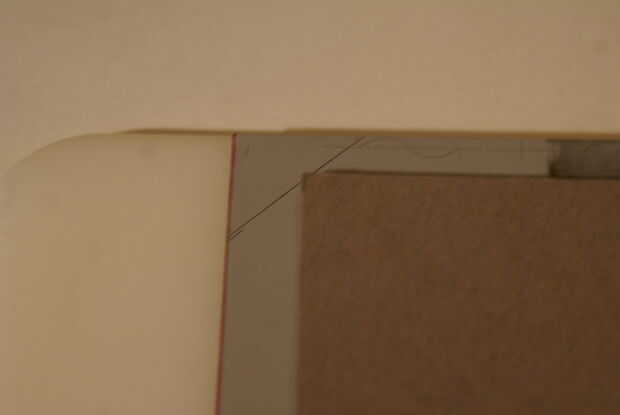 6. a continuación dibuja un ángulo recto "hacia" en el espacio entre el cartón. Deje un pequeño espacio entre el ángulo de las líneas y el cartón. sobre un décimo de una pulgada en ambos lados.