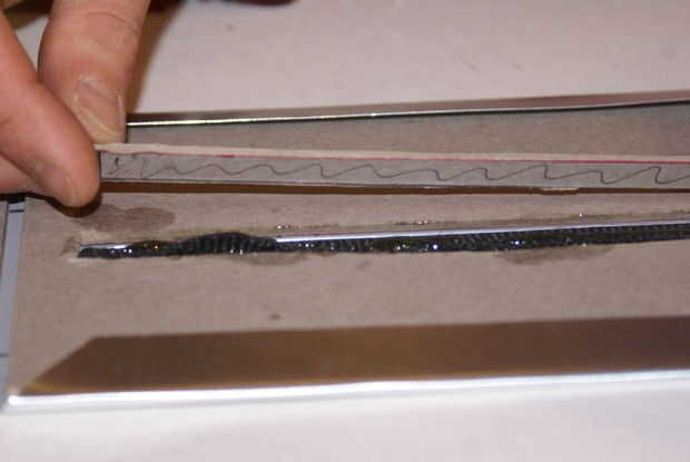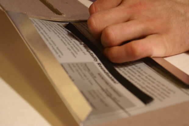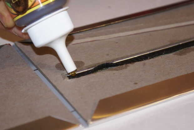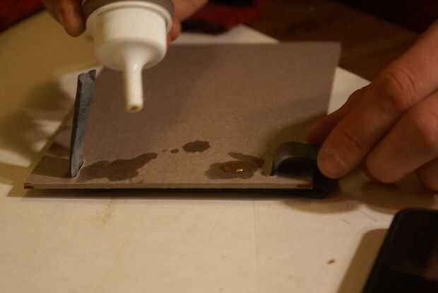 7. Aplique una gota del pegamento del gorila a lo largo de la cinta, pegar el aluminio y el cartón.