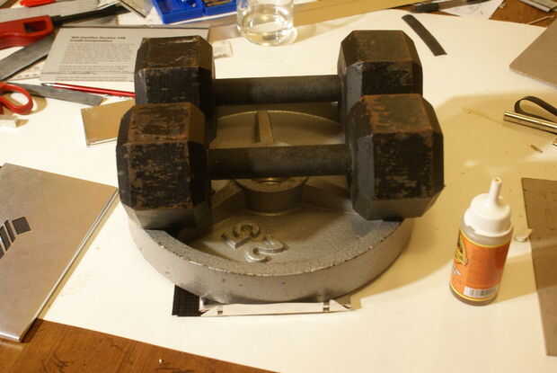5b. una vez que se pega el tubo interior, coloque un peso en él para garantizar que queda apretado. Deje que se seque.