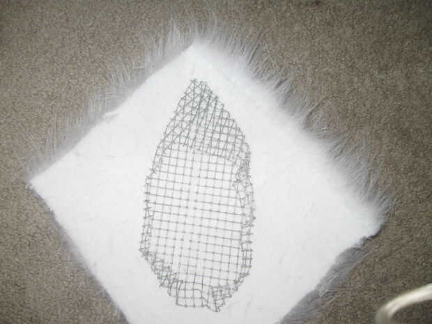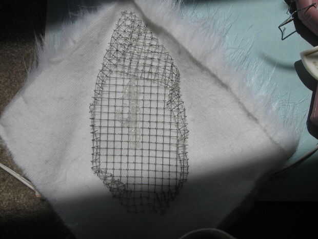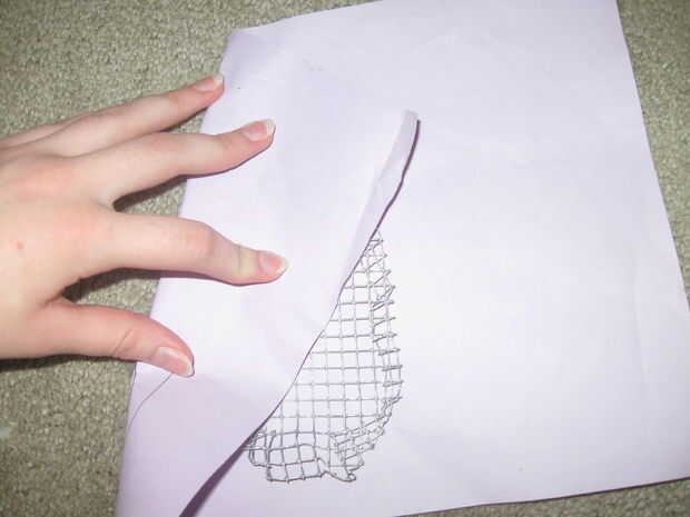 Mina vino hacia fuera en una especie de diamante de forma. A partir de ahí, me colocaron la malla de alambre en la parte trasera de la tela y había pegado primero el centro y los bordes en su lugar. Yo entonces cuidadosamente doblado el resto del interior de la tela, pegar y recortar la superposición de los bordes cuando fui. Al final, usted debe terminar con algo con ninguna tela floja, sin bordes y una necesidad desesperada de un corte de pelo.