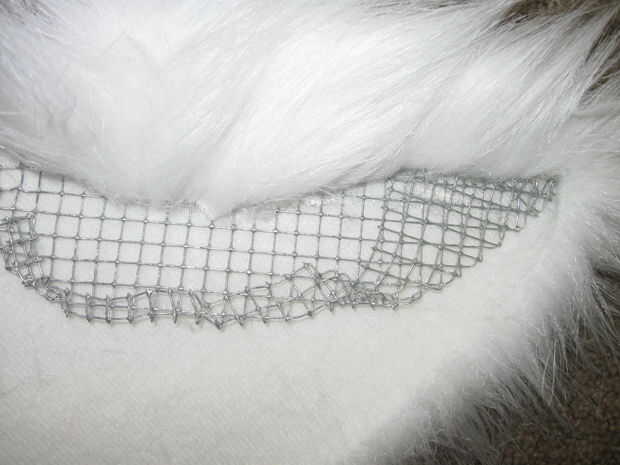 Comenzar por crear la forma básica para los oídos. Usé el acoplamiento de alambre para que se pueda doblar y plantean los oídos incluso después de adjuntarlos a la máscara. Cualquier material de modelado funcionaría así. Si haces uso de malla de alambre Asegúrese de doblar los bordes cortados, porque los bordes pueden estar afiladas y empujar los agujeros en la tela... o usted.