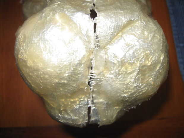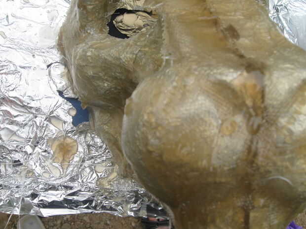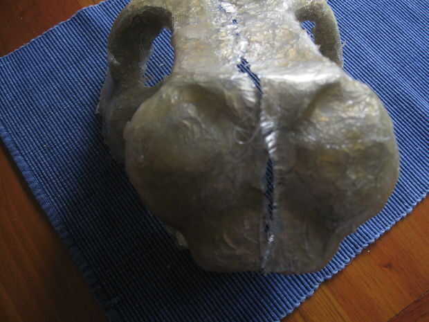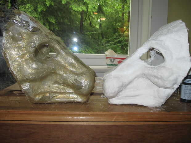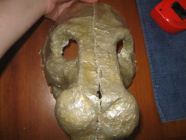 A une las mitades juntas, empezar extendiendo una capa de resina a través de las dos mitades. Si se mezcla un poco más endurecedor a la resina, cura más rápido y usted no quedarse con la mascarilla durante media hora (o más). Una vez que es curado, pintar una capa de resina dentro de la máscara y cuadrados de tela de fibra de vidrio a la superficie interna de la máscara. Esto añade estabilidad sino prevenir más pérdida de detalles en la superficie.
