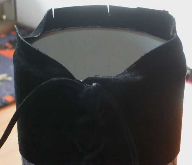Envuelva la parte inferior y ate para arriba, quiero decir realmente apretado. Corte algunas pequeñas aberturas en el colgar en la parte superior entonces aplicar un poco de pegamento por el borde y mantenga el cuero hasta que establece.