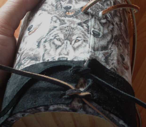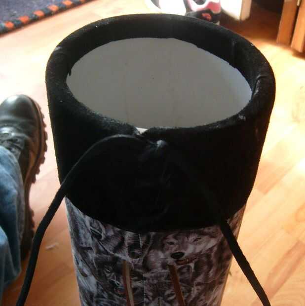 Enrolle y ate para arriba el cuero en la parte superior del tubo, dejando algunos encima para meterse en el tubo. Comience usted maldice otra vez para poner la madera en la parte inferior antes de agregar la pieza inferior de cuero. $#*!