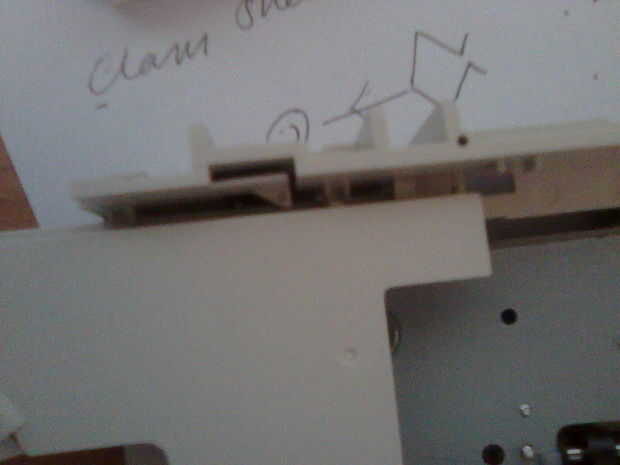 Se tiene que quitar la bandeja deslizando el mecanismo plástico del motor ya sea izquierdo o derecho hasta que sale un poco, luego sáquelo lentamente y oprima los dos clips que deje de tirar hacia fuera.
