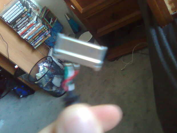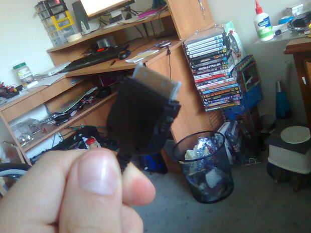 Después de usted cortar un agujero en la parte posterior de la impulsión para el cable usb para pasar, use un dremel, taladro o cuchillo, disparar incluso si crees que puedes, aunque no recomiendo esto.