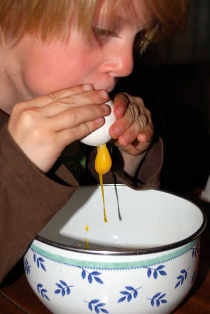 A continuación, sople por la yema de huevo. Mejor aún, conseguir un niño a hacerlo.