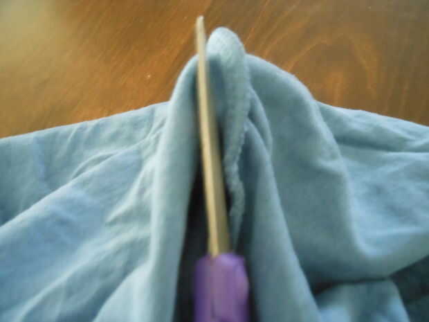 Primero, gire la camisa adentro hacia afuera. Entonces corte dentro de la manga la costura alrededor de todo el camino. (Sugiero hacerlo adentro hacia fuera y dentro de la costura porque es más limpio). Para ello de ambas mangas.
