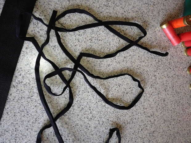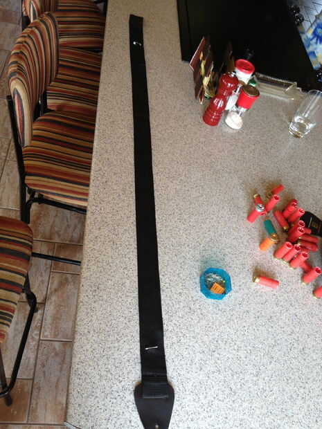 Para mi cinturón utiliza una correa de guitarra de nylon barato, el hecho de que su nylon ayuda para mi método... de fuego! más en eso más adelante. En la foto número dos vemos la Faja de spandex estilo utilizada para sostener las balas en su lugar, el hecho de que es su elástico se convirtió en más adelante irrelevante, era una idea inicial que lo mantenga apretado las balas pero no funcionó. Lo mejor para el final! Escopeta, muchos escopeta, calibre 12 para ser exactos, yo tengo la mía luces... sí su raro pero creo que usted puede comprar kits de bala para tiro. No tengo ni idea sobre los precios.