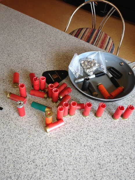 actualización: nuevas fotosTodavía tengo una pequeña bolsa de conchas de bala de cuando mi hermano me pidió hacer mancuernas para su boda. Recientemente se utiliza para hacer una flor. Aquí le damos otra oportunidad en hacer uso de cáscaras.Me martil