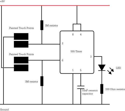 Hacer un circuito de encendido/apagado sensible toque con pintura pelada y un temporizador 555 IC (6 / 9 paso)