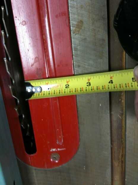 Agarra ese top de plantilla desde el paso uno y se marca una línea que es de.75 a 1 pulgada más corta que la distancia entre la cuchilla y el canal. ¿(claro como el barro? Revisa las fotos.)