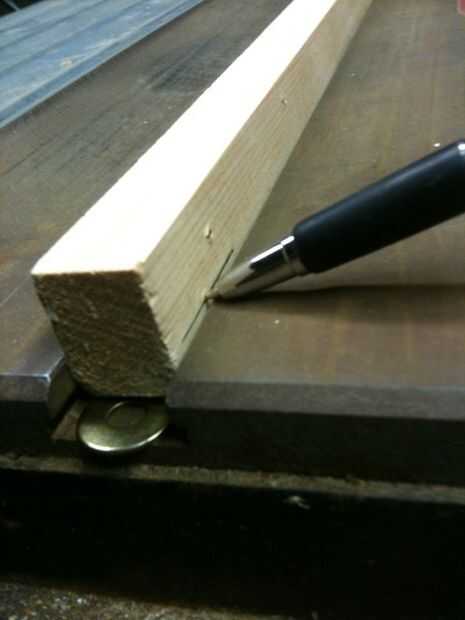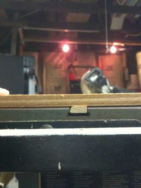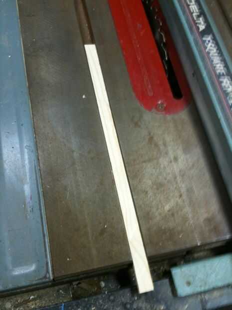 La próxima cosa que necesitas, es un pedazo de madera un poco más estrecho y más plano que el canal en la Sierra de mesa. Corte la madera dimensional o lo que usted elija, el espesor adecuado para encajar en tu canal, (me 1 "x 2" Pino cabe bien) a continuación, coloque la pieza en el canal y trace una línea a lo largo de la longitud de la misma. Cortar esto un poco más plano que el canal es profundo. Finalmente cortar su trozo a la misma longitud que el canal sí mismo.