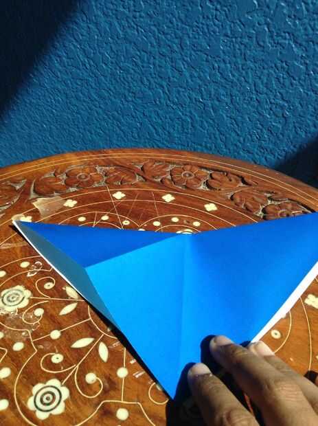 fresco y fácil de hacerPaso 1: Lo que se necesita -1 hoja de papel cuadrado (o papel de origami)Paso 2: Primero dobla el papel como se muestraPaso 3: revelar como se muestraPaso 4: doble al doblez que hiciste en el paso 2...después de hacer que volte