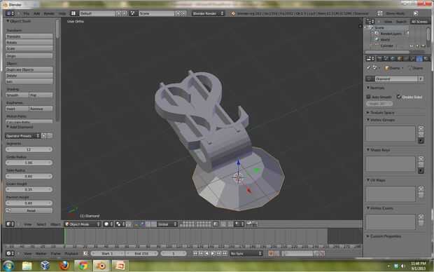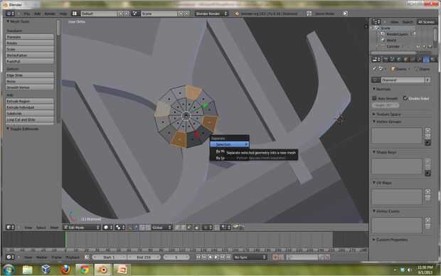 3. en el modo de edición, selecciona cuatro caras del diamante y separarlos (prensa p--por la selección)