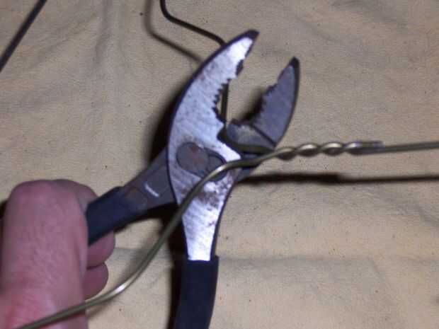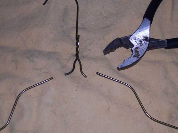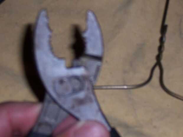 Con las mordazas de corte de alambre de sus alicates corte hagar justo debajo de la parte torcida.  Realmente no queremos tratar de enderezar que fuera así cortarlo.