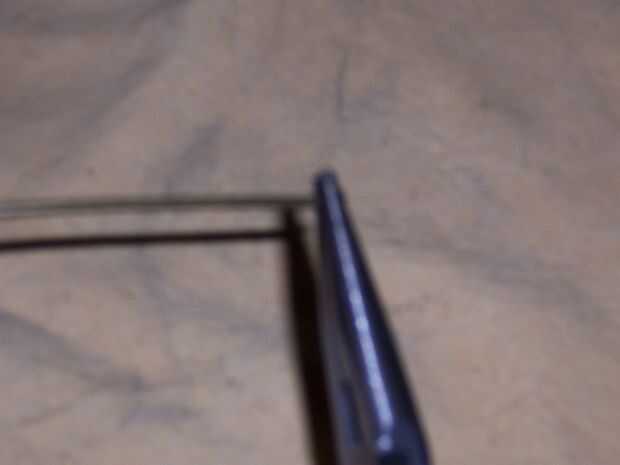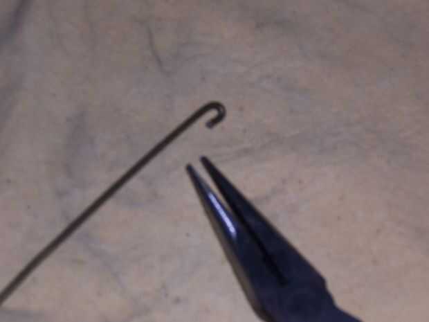 Usando sus alicates de punta curva un poco gancho en un extremo del cable.