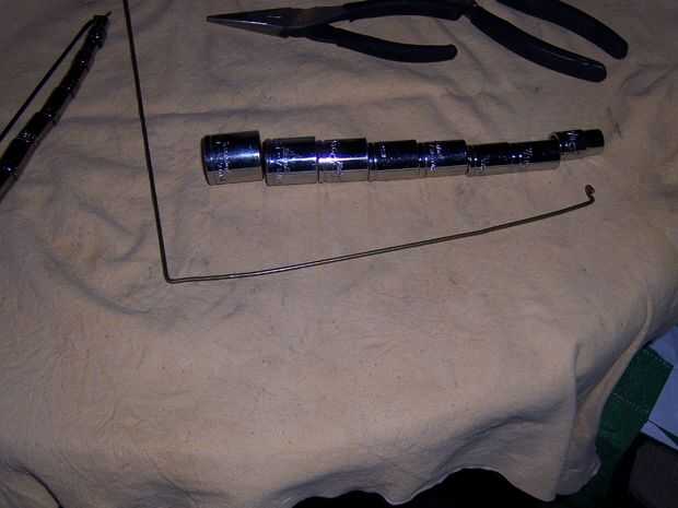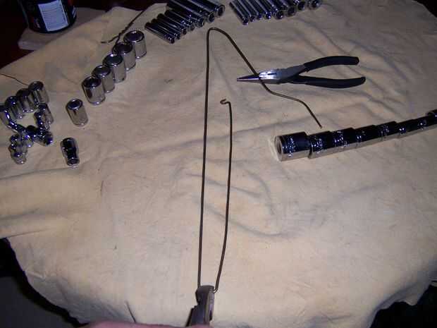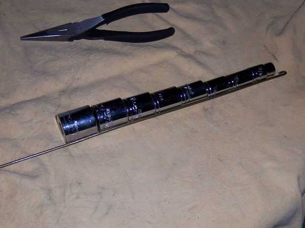 Línea de sus zócalos.  Doble su anzuelo sobre por lo que es 90 grados al alambre.  Doble el alambre por debajo de la última toma para que esté apuntando en la misma dirección que su gancho.  Luego utilizar el ancho de mis pinzas como un calibrador y doblar el alambre hasta el gancho.