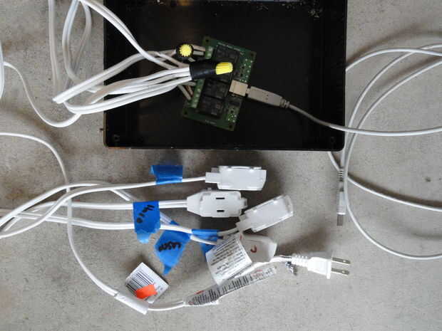 tableros de relés para construir dos dispositivos que me conseguirá 8 circuitos de 110v que puedo controlar vía USB y programa que escribí en C#. net. Este programa sería recibir comandos desde el equipo controlador y convertiría a circuitos de encendido o apagado. Mi hijo de 10 años y me salió una patada de escribir bloques de código con la etiqueta "Lanzallamas en" y "Misiles en".