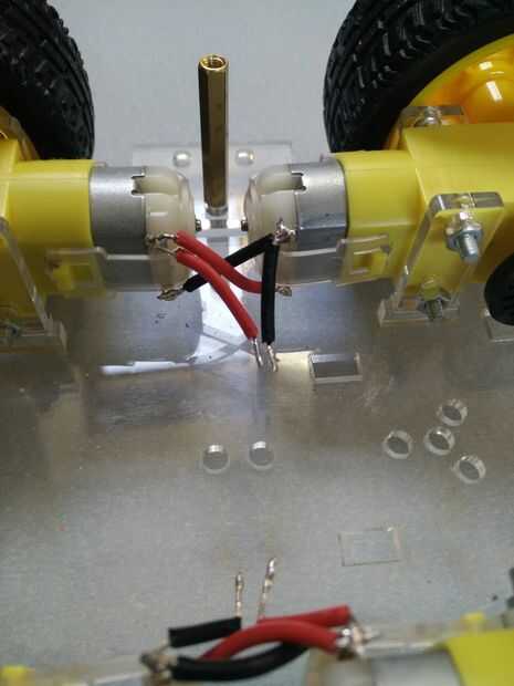 Después de eso, puede acortar los cables y soldarlos transversalmente a los cuatro motores. (Como se ve en la última foto)