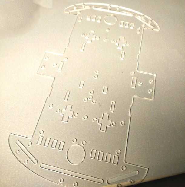 El primer paso es pelar el papel protección de todas las piezas de acrílico. (Placa superior e inferior, soportes del motor, discos de codificador)