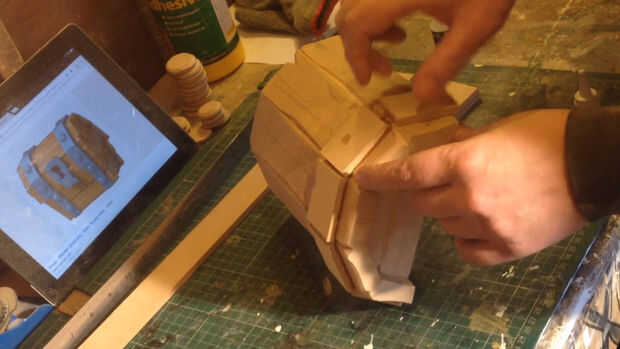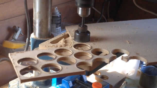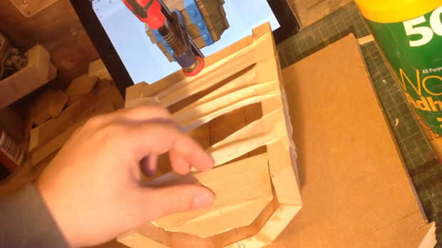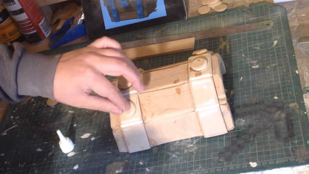 Luego comenzó a trabajar en las barras de metal y remaches. Utilizando 6mm MDF 10 x 4 x 5 cm círculos de tiras y 10 x 2,5 cm. I forma, lijado y pegado a la tapa, ver imagen o vídeo para mejor comprensión.