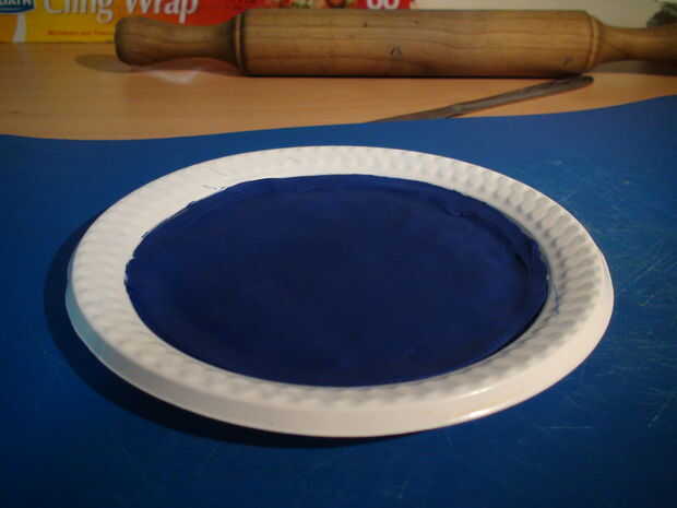 Este paso es realmente sencillo, todo necesita hacer es rodar estas dos bolas (preferentemente con un rodillo) en círculos planos con sobre un espesor de 0,5 mm, 0,8 mm. Estos círculos deben ser del mismo tamaño que la base de la placa. Luego, simplemente coloque uno de los colores en la base de la placa y aplanarlo tanto como sea posible. Después de que se haya completado, coloque el otro color de la arcilla por encima de esta capa y hacerlo del mismo modo como plana e incluso como posible.