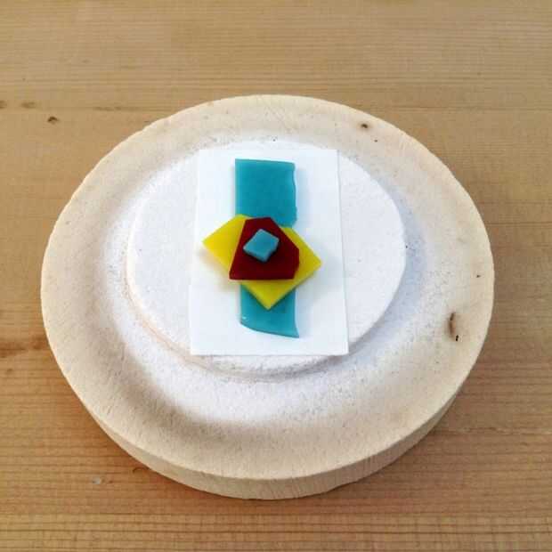 Después de decidir que tipo de vidrio que utilizaría, elegir los colores que te encantaría tener en su colgante y luego escoger algunas piezas grandes y algunas pequeñas. Una vez seleccionado, empezar a organizar las piezas para formar un diseño abstracto.