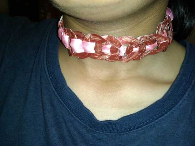 Ahora toma collar arandela y atar en le cuello. (véase cuadro) .esta hará chocker.