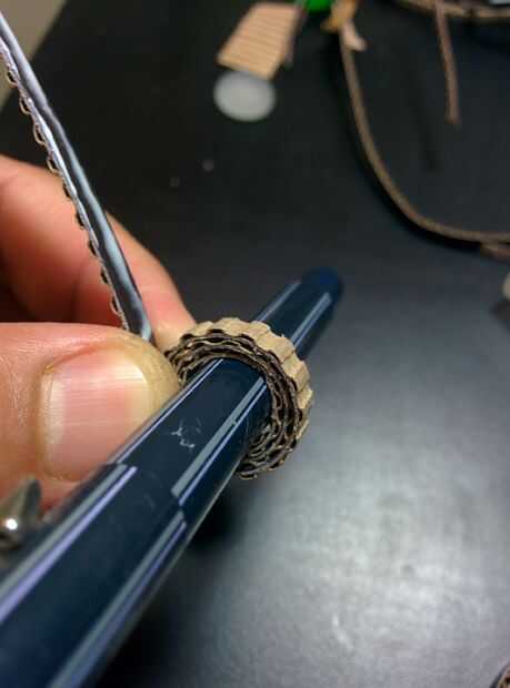 - Envolver una tira alrededor de él una vez, aplique el pegamento a la tira restante y enrollar 4 veces más. Retire el lápiz.