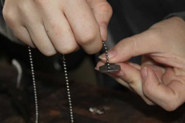 Atamos un encanto a nuestra llave y colocado en el collar, mi hija escogió un encanto de perro dachshund.