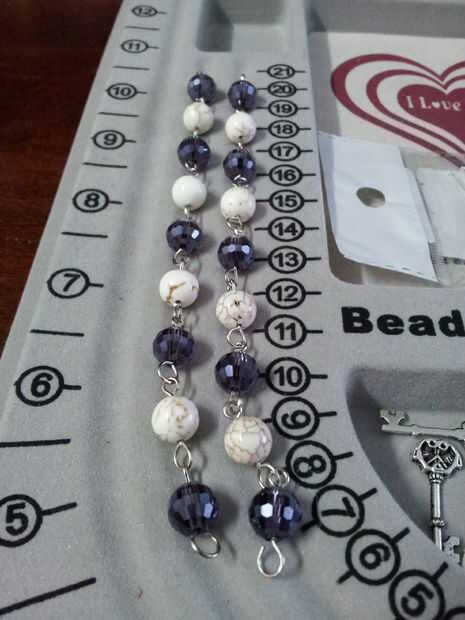 En este punto, debería tener dos filamentos cortos y dos largos filamentos de granos. Los dos filamentos largos deben tener un anillo de salto o de un corchete de la langosta en un extremo.