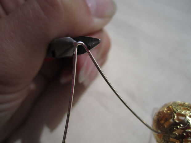Una vez que el alambre está doblado, poner el punto de la curva en sus pinzas y de la abrazadera hacia abajo para hacerlo más puntiagudos. Repita para el otro lado.