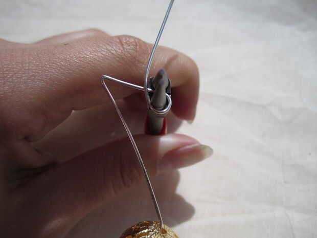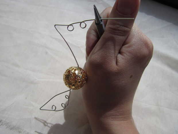 A hacer tres lazos, cada uno de aproximadamente 1/2 pulgada aparte. 1/2 pulgada desde el punto en el ala y siga el bucle que hace de guía en el paso 2. Después de hacer los bucles, doble la parte inferior del ala hacia arriba y sobre el alambre cerca de donde el grano se encuentra con la primera curva que hiciste. De esta forma que usted puede comprobar cómo se ve su ala.