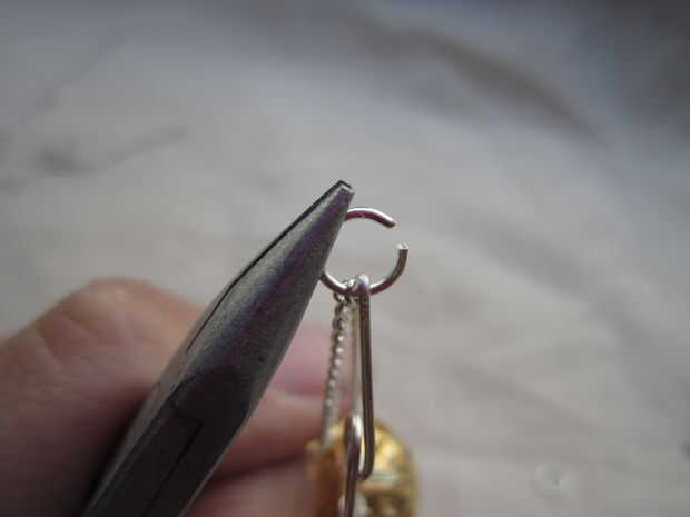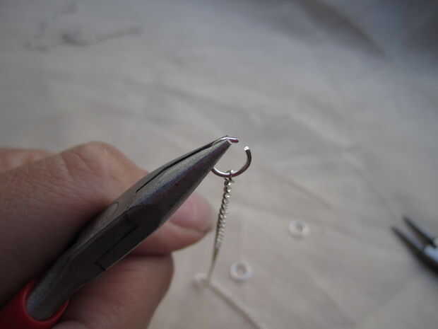 Ser suave cuando se trabaja con anillas porque son fácilmente deformados y asegúrese de que está cerradas firmemente. De lo contrario, una cadena fina patinará derecho hacia fuera.
