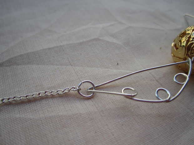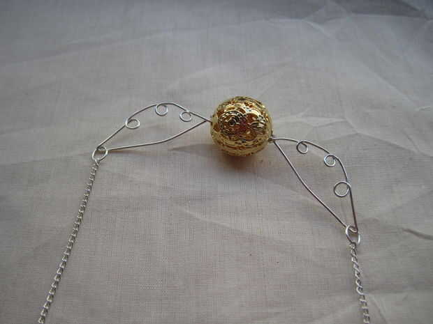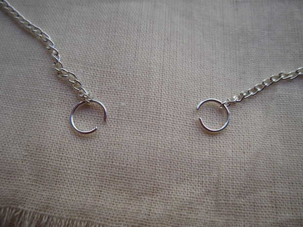 Conecte la cadena a las alas con anillas y luego colocar anillas en los extremos opuestos de la cadena, poniendo el broche en uno de ellos.