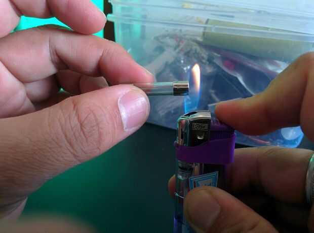 - Calor el tapón durante 10-15 segundos usando más uniformemente girando el fusible. Esto funde el pegamento dentro.