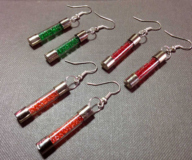 Casi dos años atrás hice estos pendientes con fusible eléctrico, que creo que sería agradable con este collar de par. Echale un instuctable completo aquí.