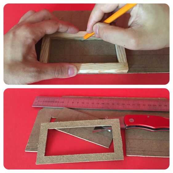 Coloque el marco de rectángulo en la pantalla, y luego marque y corte un rectángulo un poco más pequeño que el marcado.