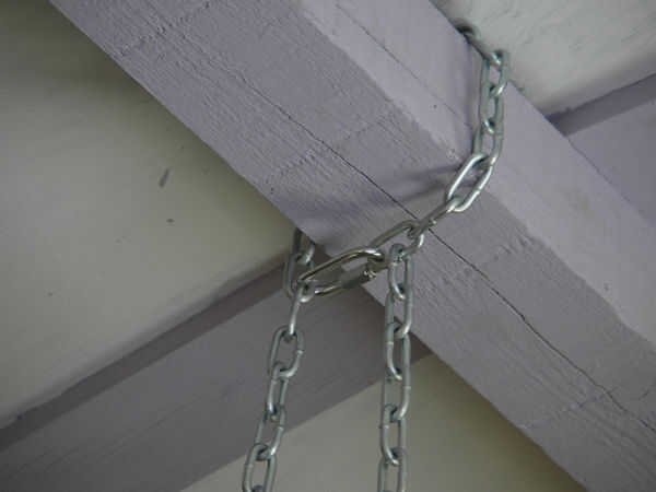 -Ponga cada cadena sobre la cosa (rama de árbol, viga) de que se suspendería su swing. Fije cada cadena a sí mismo utilizando el ¼" cadena eslabón. Apretar el eslabón de la cadena con una llave. Ate cualquier cadena extra a sí mismo en un nudo para mayor seguridad.