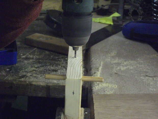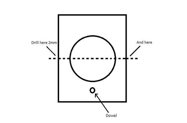 Taladre a través de cada lado de la 'estructura' medio camino a través del agujero grande usando un taladro de 2mm - o el grosor del alambre.
