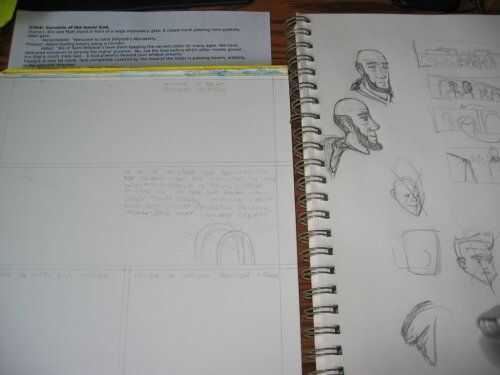 En el panel de dos, se puede ver que he esbozado en algunas ilustraciones. Quería asegurarse de que la colocación de texto a que elegí no ocultar nada importante, así que tuve que saltar adelante un poco...